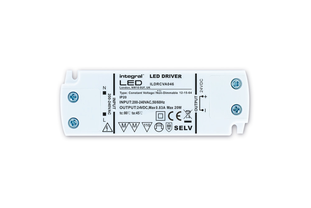 CONSTANT VOLTAGE DRIVER 20W 24VDC IP20 NON-DIMM 200-240V INPUT INTEGRAL