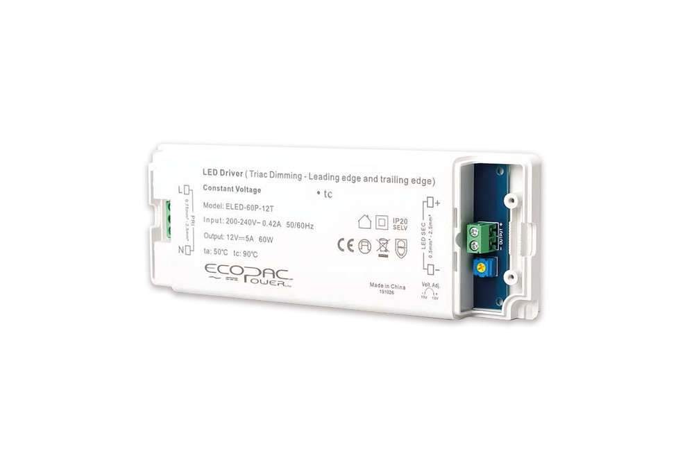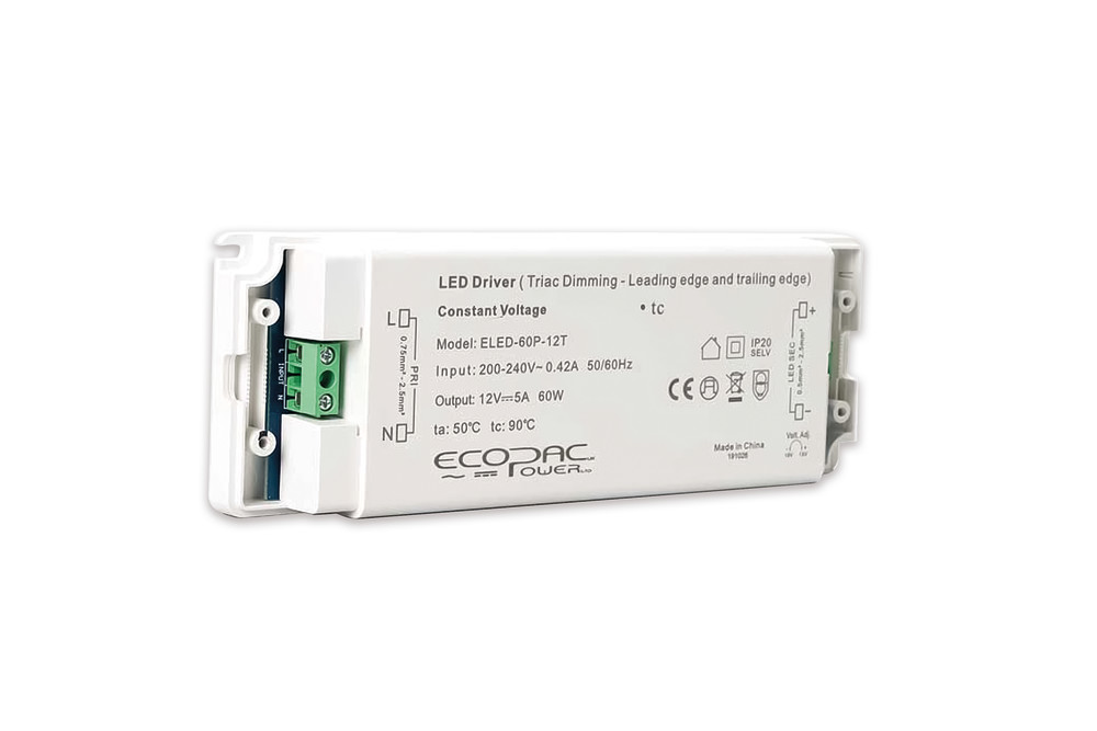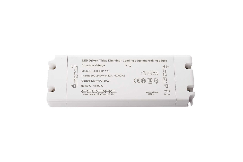 CONSTANT VOLTAGE DRIVER 60W 12VDC IP20 TRIAC DIMMABLE 200-240V INPUT 6W MIN LOAD ECOPAC POWER