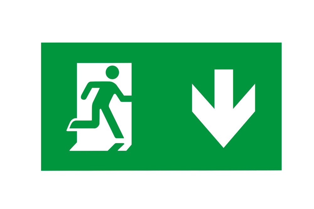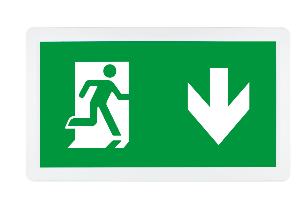 - Down arrow legend for Emergency Exit Box Slimline 2 - 1.5W Non-Maintained LED Emergency Exit Sign