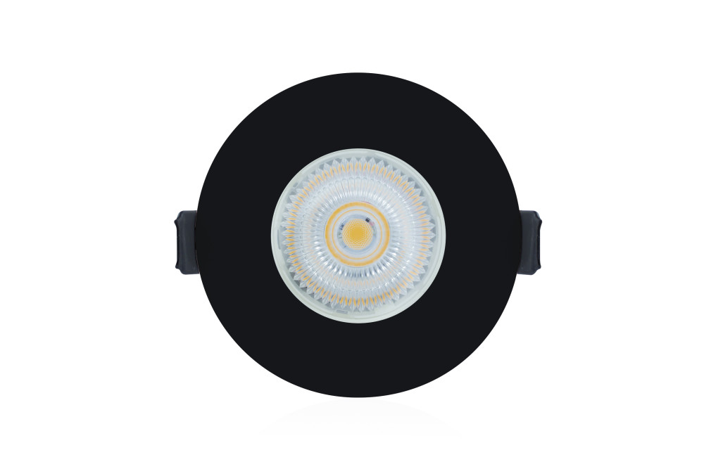 EVOFIRE 85 FIRE RATED DOWNLIGHT 70MM CUTOUT IP65 BLACK ROUND +GU10 HOLDER & INSULATION GUARD INTEGRAL