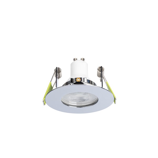 EVOFIRE 85 FIRE RATED DOWNLIGHT 70MM CUTOUT IP65 POLISHED CHROME ROUND +GU10 HOLDER INTEGRAL