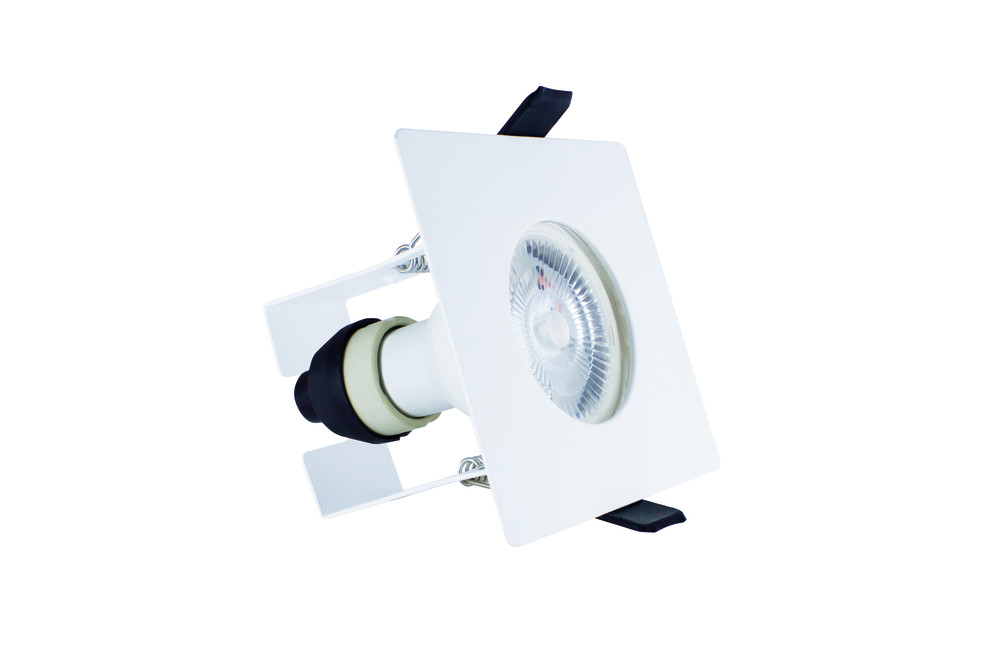 EVOFIRE 85 FIRE RATED DOWNLIGHT 70MM CUTOUT IP65 WHITE SQUARE +GU10 HOLDER & INSULATION GUARD INTEGRAL