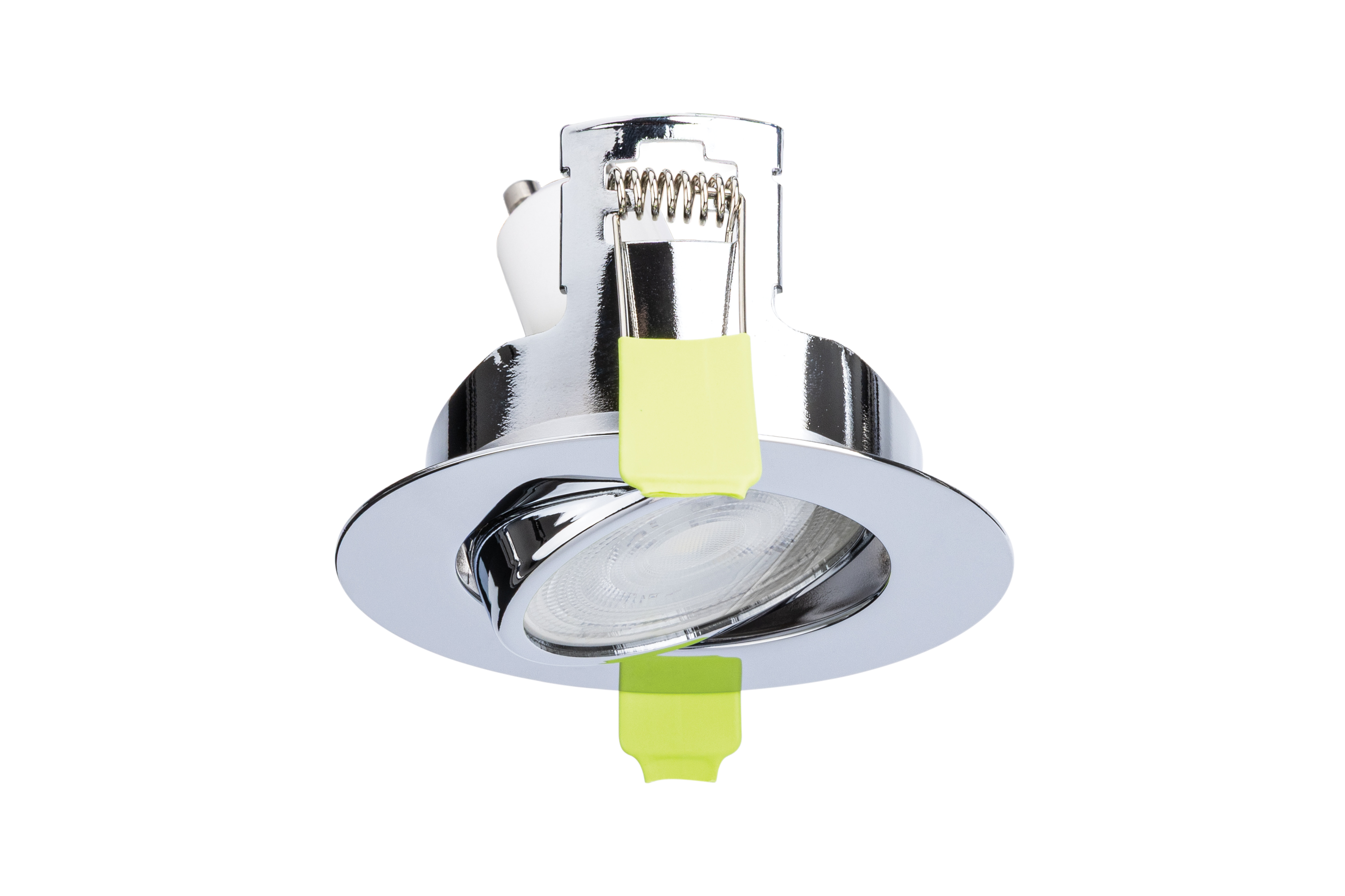 EVOFIRE 85 TILTABLE FIRE RATED DOWNLIGHT IP20 70MM CUTOUT 85MM DIA POLISHED CHROME ROUND INTEGRAL