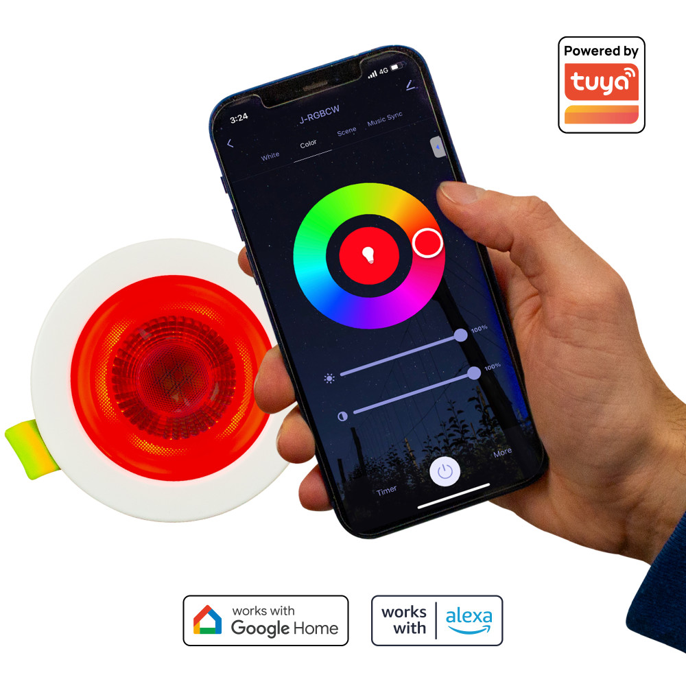 ECOGUARD SMART FIRE RATED DOWNLIGHT 65MM CUTOUT IP65 600LM 5W RGBW 2700K TO 6500K TUYA CONTROL 38 BEAM DIMMABLE 120LM/W WHITE INTEGRAL