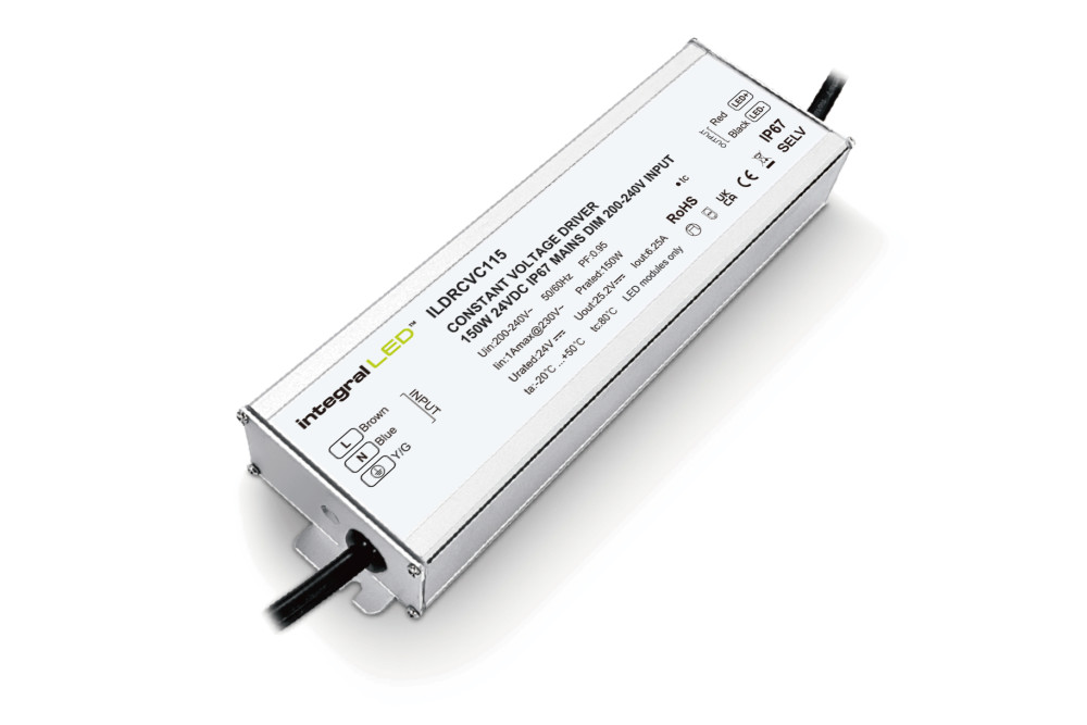 CONSTANT VOLTAGE DRIVER 150W 24VDC IP67 MAINS DIM 200-240V INPUT INTEGRAL
