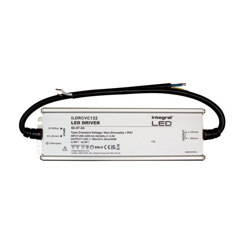 CONSTANT VOLTAGE DRIVER 240W 24VDC IP67 NON-DIMM 200-240V INPUT INTEGRAL