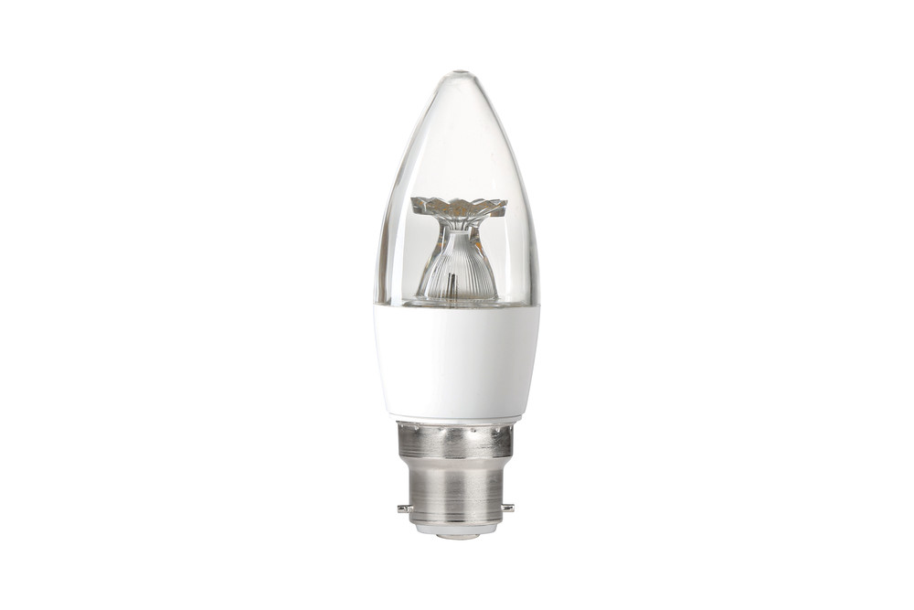 This 4.9W retro-fit Integral LED Candle (clear finish, large bayonet, white base) delivers a cool white light and brightness, similar to a 40W filament bulb. It features high output LEDs and an anti-glare refractor. Ideal for living rooms, dining rooms, bedrooms and hotels, in classic or modern wall or floor/table lamp fittings and chandeliers.
