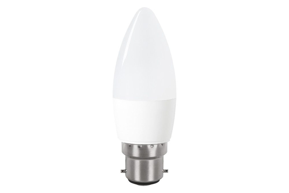 THIS ITEM IS NOW UPGRADED OR DISCONTINUED. CONTACT US TO FIND A REPLACEMENT PRODUCT. This 4.2W retro-fit Integral LED Candle (frosted finish, large bayonet, white base) delivers a warm light and brightness, similar to a 40W filament bulb. It features high output LEDs and an anti-glare refractor. Ideal for living rooms, dining rooms, bedrooms and hotels, in classic or modern wall or floor/table lamp fittings and chandeliers.