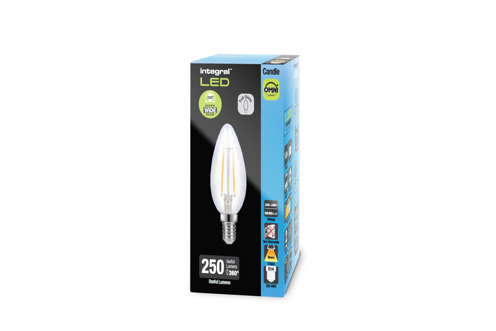 OMNI FILAMENT CANDLE BULB E14 250LM 1.8W 2700K NON-DIMM 330 BEAM CLEAR FULL GLASS INTEGRAL