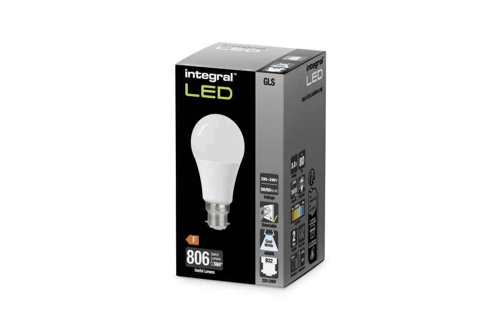This 7W retro-fit Integral LED Classic Globe (GLS) (large bayonet base) delivers a dimmable, warm light and brightness, similar to a 60W filament bulb. It features high output, multi LEDs, an anti-glare refractor, all finished in an aluminium and plastic, thermally efficient body. Ideal for living rooms, hallways and kitchens.