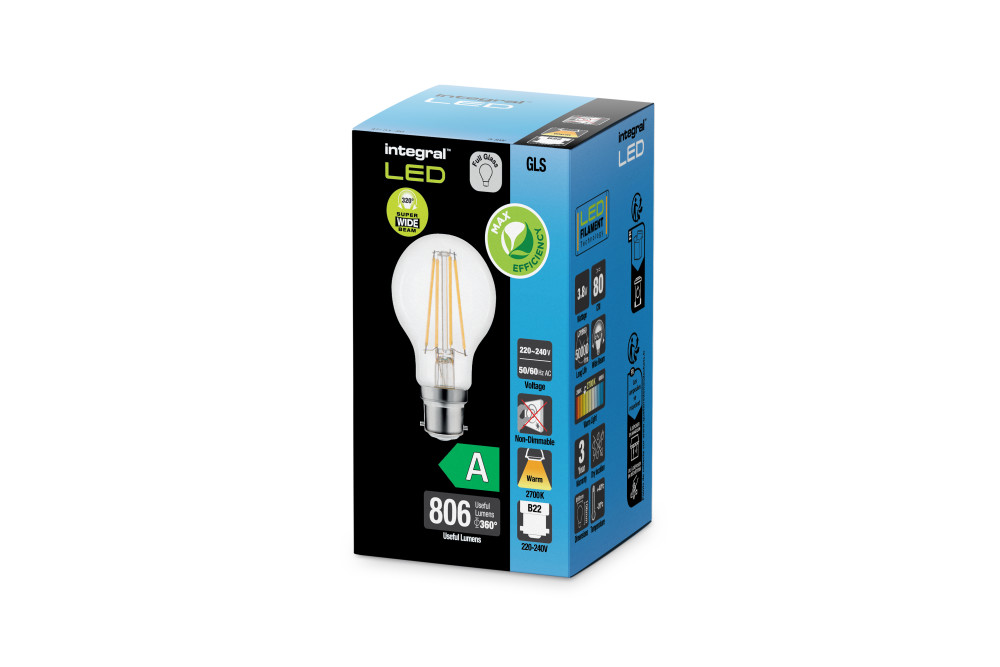 OMNI FILAMENT GLS BULB B22 806LM 3.8W 2700K 212LM/W CLASS A NON-DIMMABLE 320 BEAM CLEAR FULL GLASS INTEGRAL