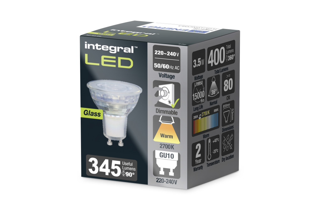 The glass body and cleverly engineered surface mounted LEDs of the Integral LED GU10 range give them an attractive look that is very similar to traditional halogen lamps.