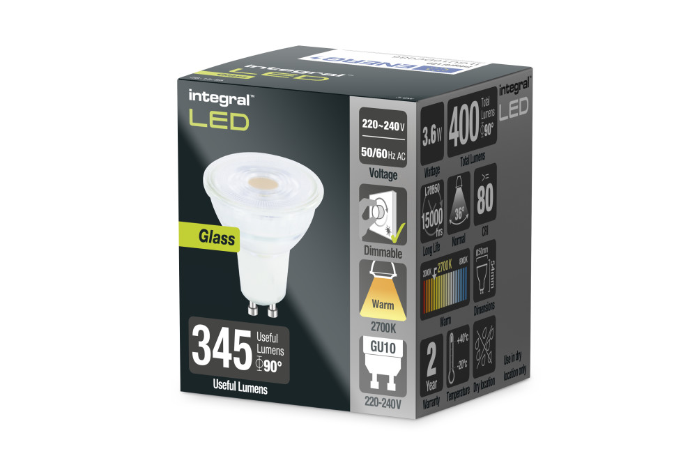 GLASS GU10 BULB 400LM 3.6W 2700K DIMMABLE 36 BEAM INTEGRAL