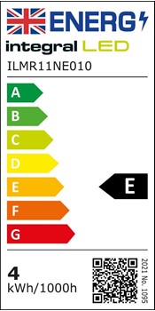 This 3.4W retro-fit Integral LED MR11 delivers brightness similar to a 35W halogen bulb, in cool white light. It features four high output LEDs, an anti-glare refractor, all finished with a plastic thermally efficient body. The ideal lamp for commercial and home use.