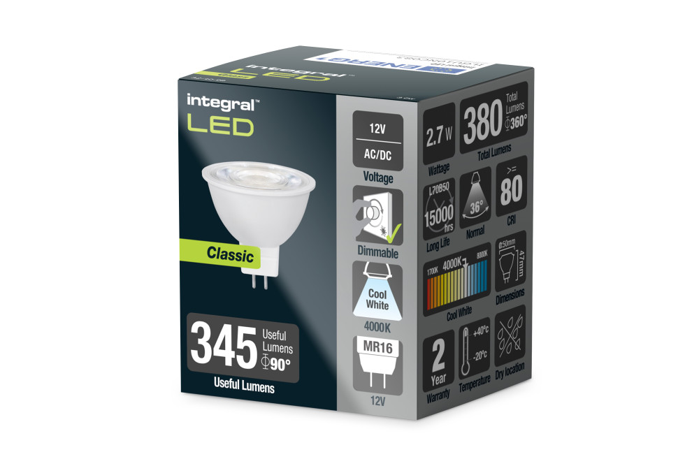 CLASSIC MR16 BULB GU5.3 380LM 2.7W 4000K DIMMABLE 36 BEAM (CLASS D) INTEGRAL