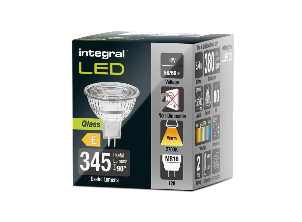 GLASS MR16 BULB GU5.3 380LM 3.4W 2700K NON-DIMM 36 BEAM INTEGRAL