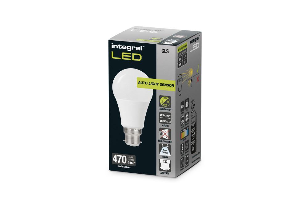 This 4.8W retro-fit Integral LED Auto Sensor Classic Globe (GLS) (large bayonet base) delivers a warm light equivalent to 40W. Because security lighting is on an average of 12 hrs. per day you can save over 20 GBP/29 EUR per bulb, per year on energy. It automatically switches ON at dusk and OFF at dawn, with dual 360 sensors to detect daylight from all angles. Ideal for external porches, walkways, paths and patios. To be used in suitable enclosed outdoor fittings.