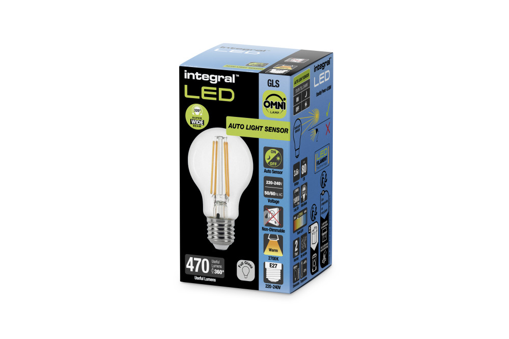 OMNI FILAMENT GLS BULB WITH DUSK TO DAWN DUAL SENSOR E27 470LM 3.6W 2700K NON-DIMM 320 BEAM INTEGRAL