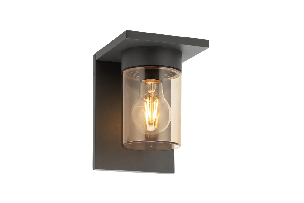 This sleek, modern wall lantern with a vintage twist is designed to emulate the look of a traditional incandescent lamp, while maintaining the efficacy of LED. It provides warm illumination for outdoor areas, evoking a welcoming feel with its tinted amber glass and dark grey body. The IP54 rating ensures good protection from the elements. Requires 1xE27, sold separately.