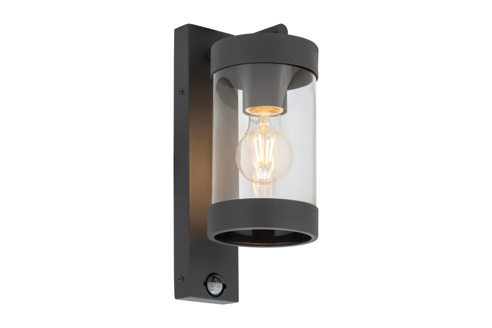 LUCENA PORCH LANTERN WALL LIGHT PIR IP23 1xE27 DARK GREY INTEGRAL