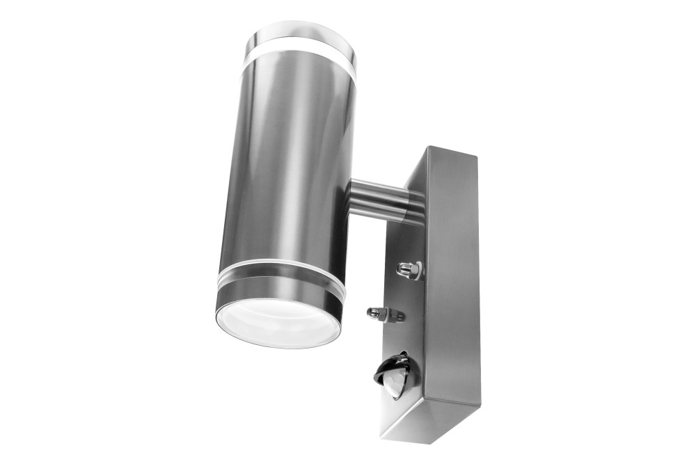 OUTDOOR STAINLESS STEEL UP AND DOWN WALL LIGHT PIR IP54 2xGU10 STEEL INTEGRAL