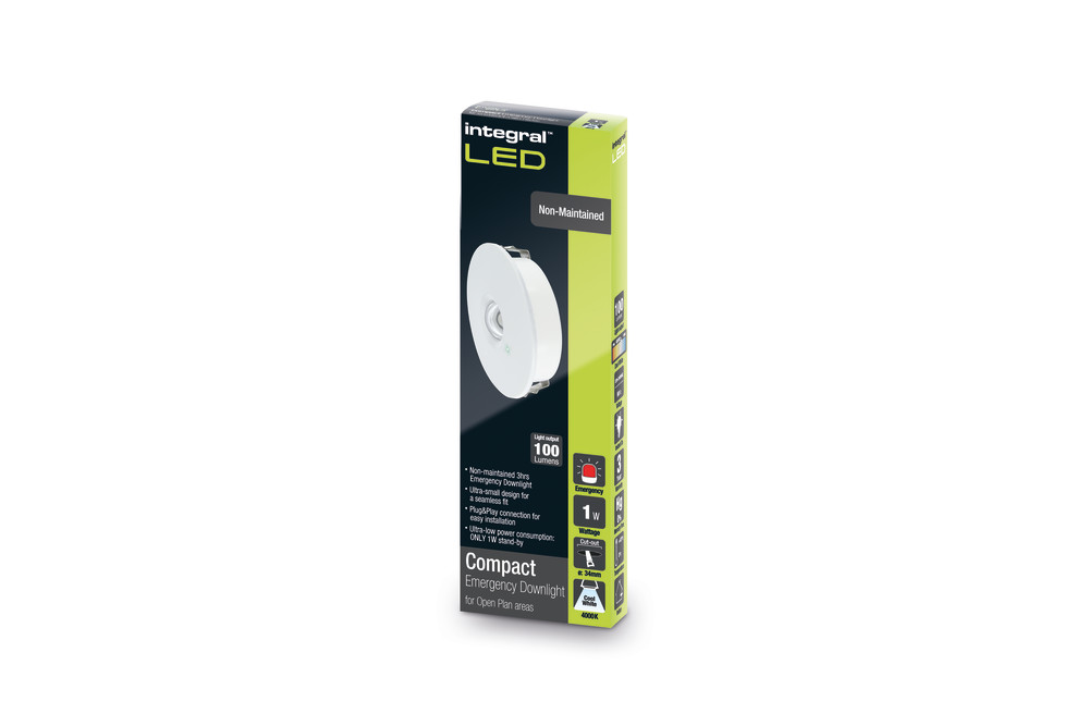 COMPACT EMERGENCY DOWNLIGHT 34MM CUTOUT IP20 100LM 1W 4000K 3HR NON-MAINTAINED OPEN AREA MANUAL INTEGRAL