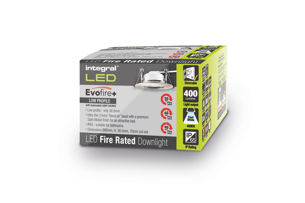 EVOFIRE+ FRDL 70MM CUTOUT IP65 400LM 3.8W 4000K 36 BEAM DIMMABLE 105LM/W SATIN NICKEL ROUND INTEGRAL