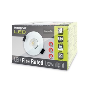 LOW-PROFILE FIRE RATED DOWNLIGHT 70-75MM CUTOUT IP65 850LM 10W 4000K 60 BEAM DIMMABLE 85LM/W WHITE INTEGRAL