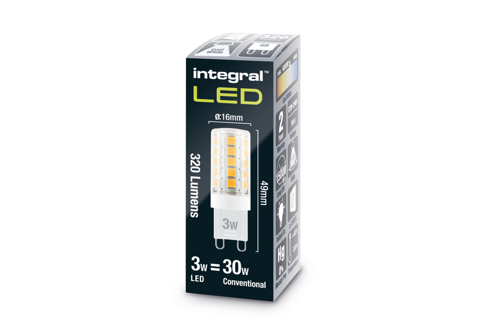 This Integral LED G9 lamp offers a high lumen output in 4000K. At 3W this smooth dimming capsule lamp is highly efficient compared to the halogen lamps they are designed to replace. Ideal for pendant fittings and accent lighting in domestic, hospitality and retail applications.