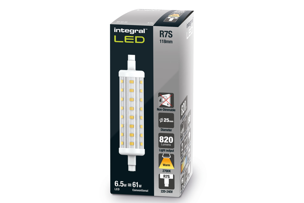 Integral LED R7S lamps are ideal for commercial and residential outdoor use in floodlights and in interior uplighter and downlighter wall fittings. Integral LED R7S lamps are designed to retrofit easily into existing R7S halogen lamp fittings.