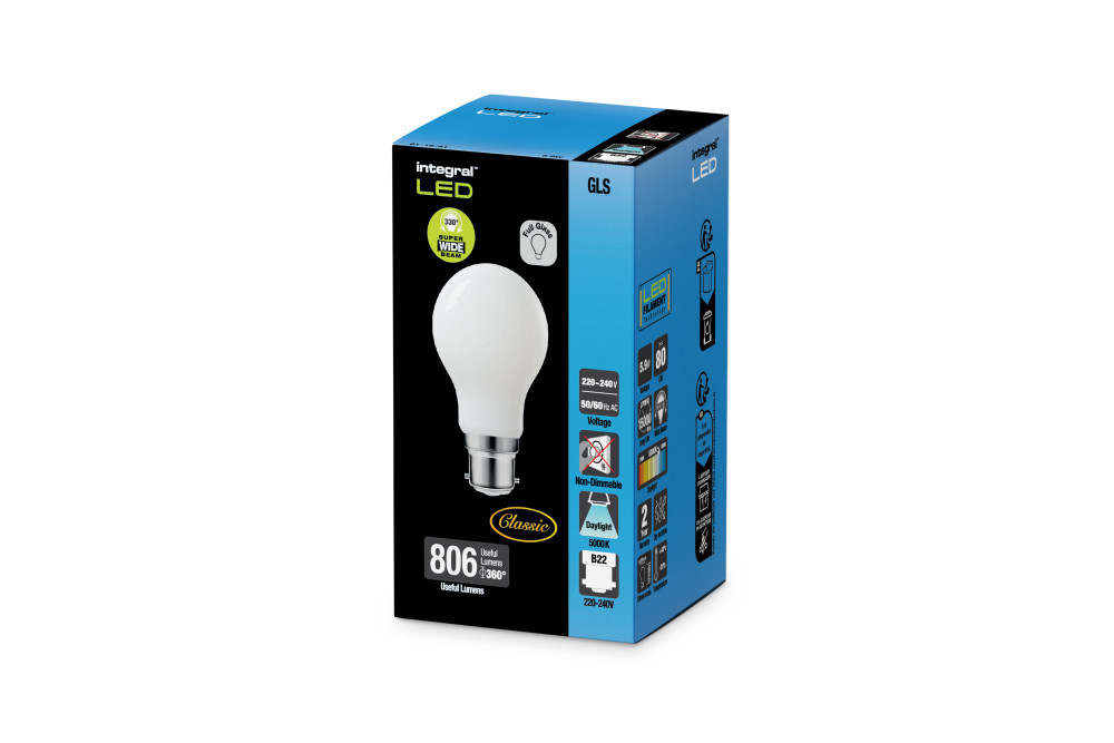 CLASSIC FILAMENT GLS BULB B22 806LM 5.9W 5000K NON-DIMM 330 BEAM FROSTED INTEGRAL