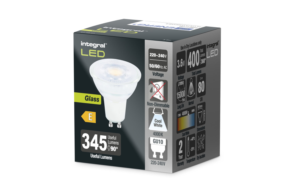 GLASS GU10 BULB 400LM 3.6W 4000K NON-DIMM 36 BEAM INTEGRAL