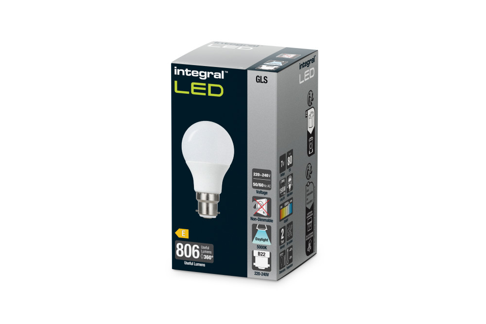 GLS BULB B22 806LM 7W 5000K NON-DIMM 240 BEAM FROSTED INTEGRAL