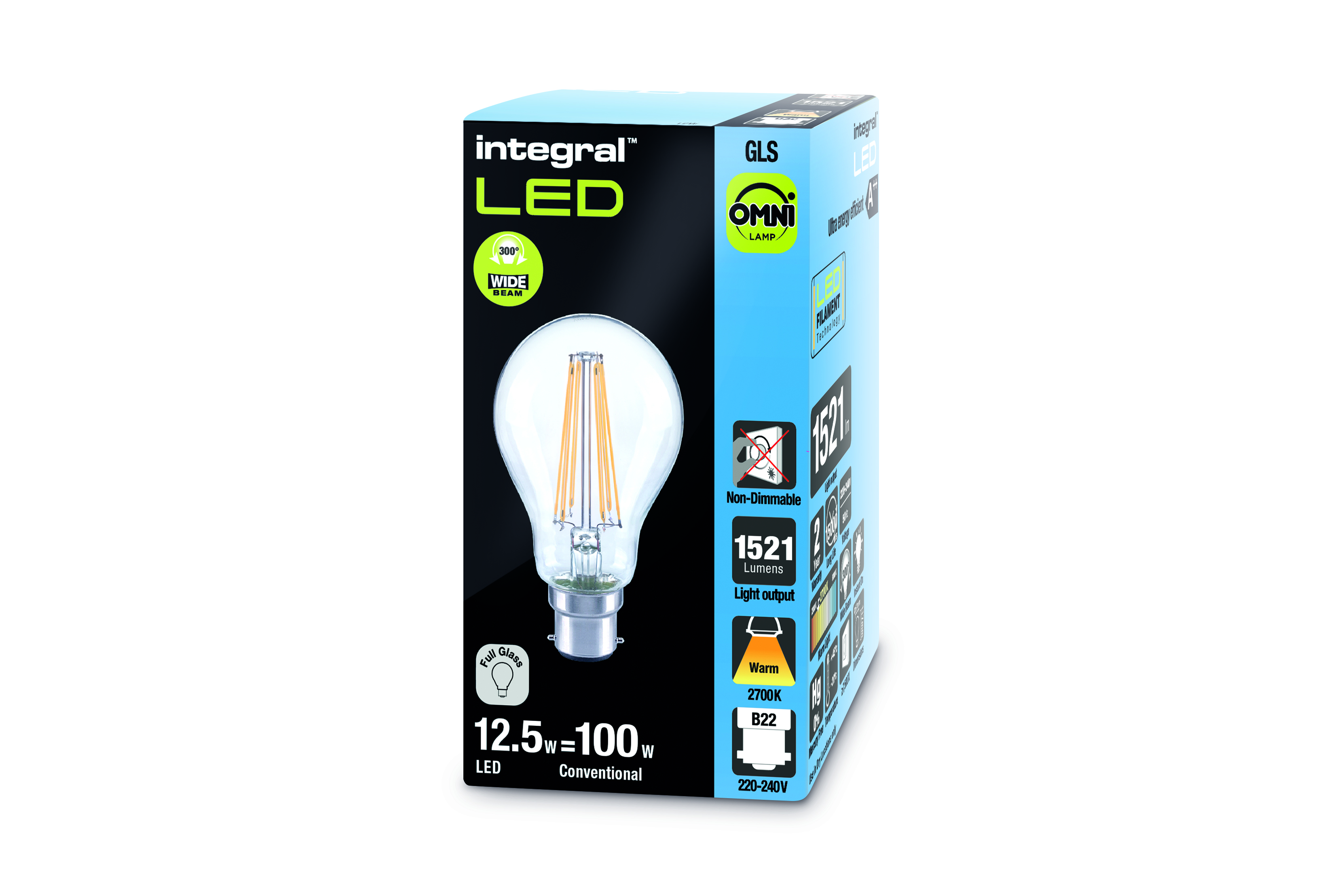 OMNI FILAMENT GLS BULB B22 1521LM 12.5W 2700K NON-DIMM 300 BEAM CLEAR FULL GLASS INTEGRAL