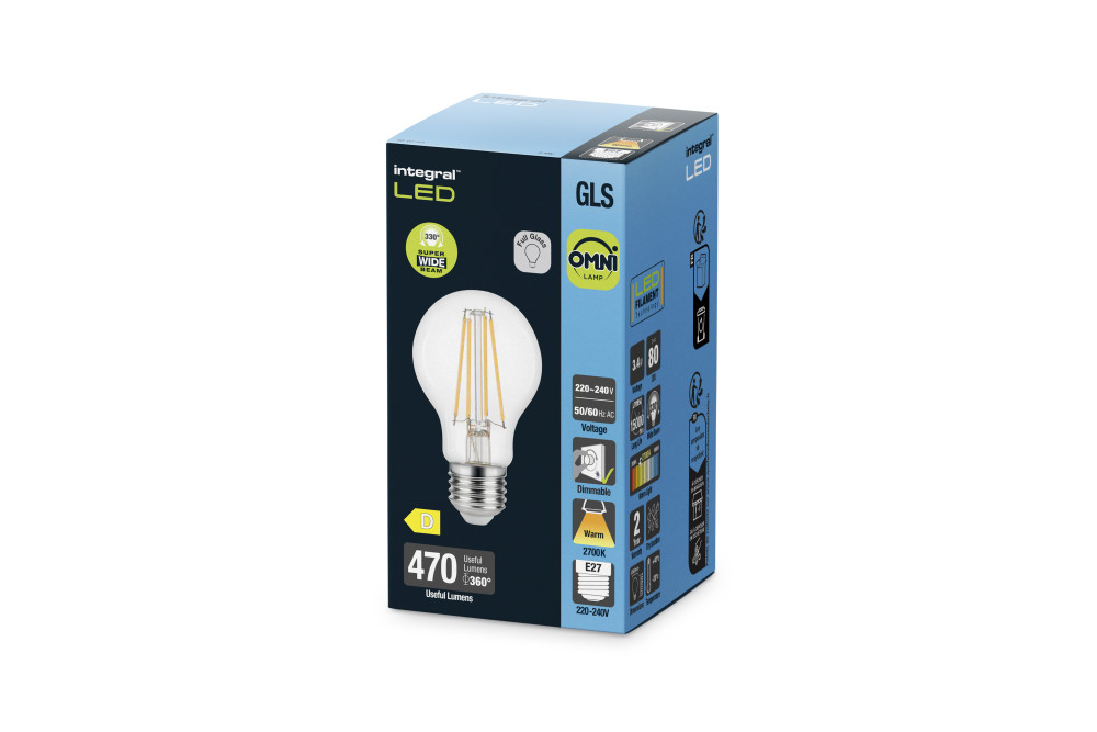 OMNI FILAMENT GLS BULB E27 470LM 3.4W 2700K DIMMABLE 330 BEAM CLEAR FULL GLASS INTEGRAL