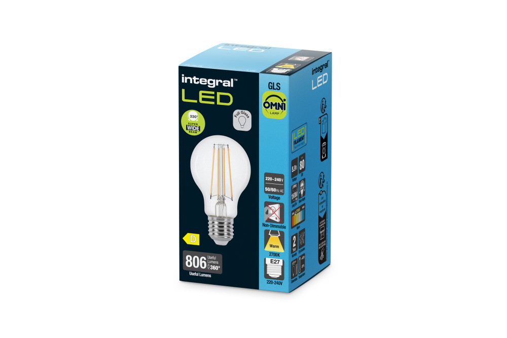 OMNI FILAMENT GLS BULB E27 806LM 5.9W 2700K NON-DIMM 330 BEAM CLEAR INTEGRAL