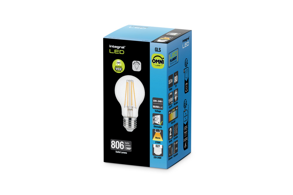 OMNI FILAMENT GLS BULB E27 806LM 5.9W 2700K DIMMABLE 330 BEAM CLEAR FULL GLASS INTEGRAL