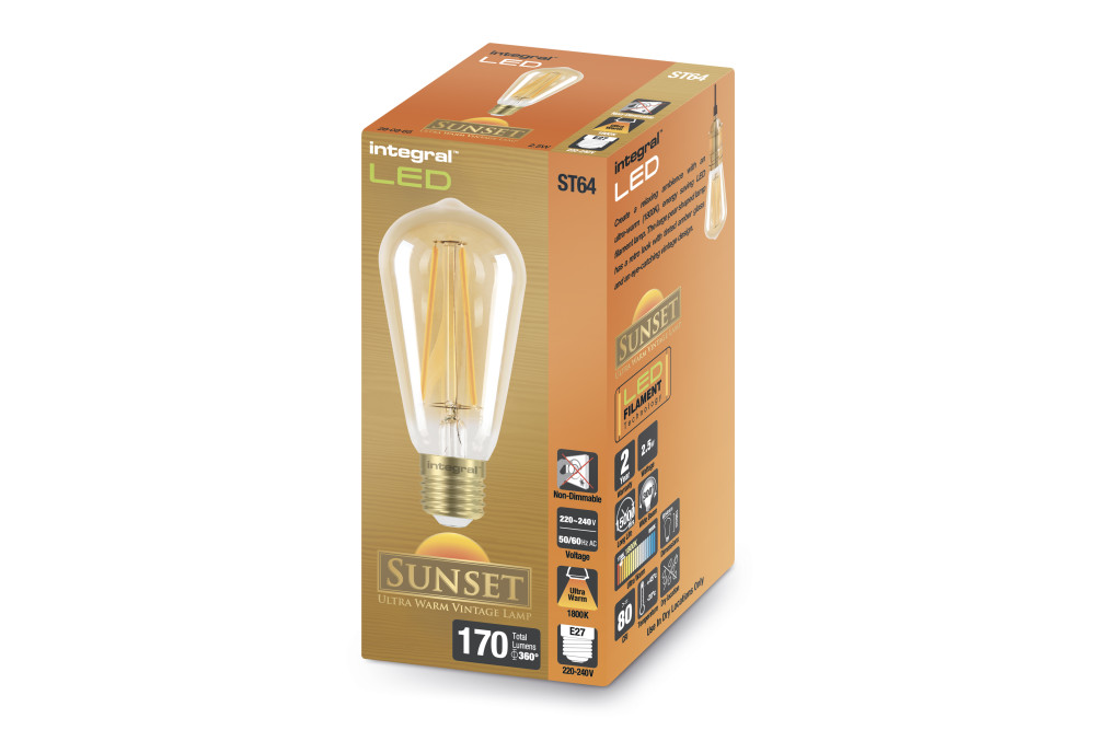 SUNSET ST64 BULB E27 170LM 2.5W 1800K NON-DIMM 300 BEAM AMBER INTEGRAL