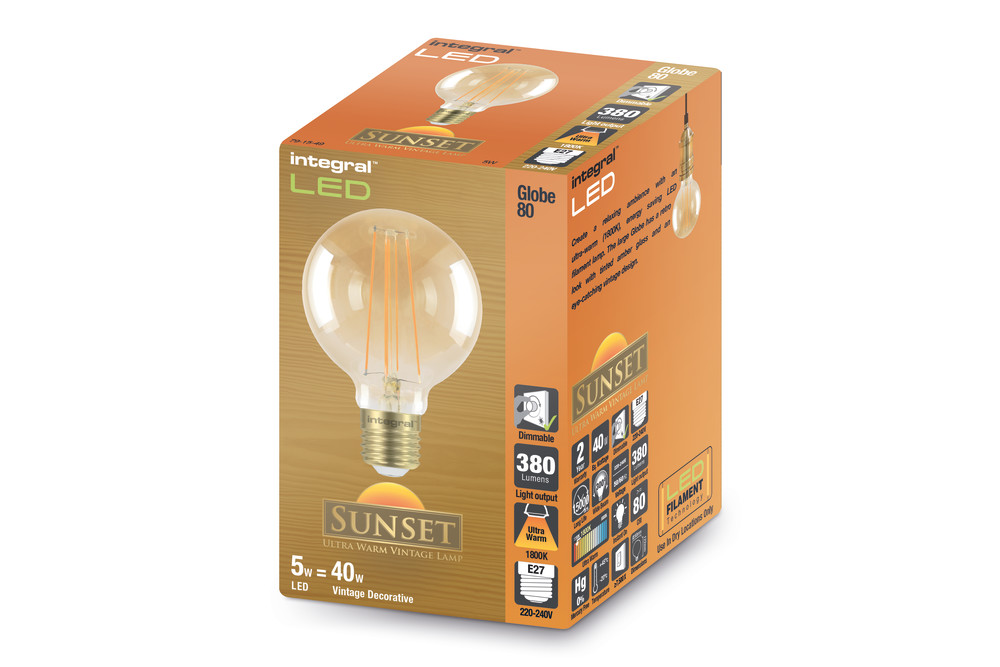 SUNSET GLOBE G80 E27 380LM 5W 1800K DIMMABLE 300 BEAM AMBER INTEGRAL