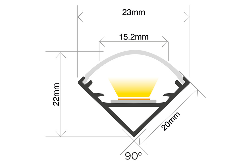 PROFILE ALUMINIUM CORNER SURFACE MOUNT BLACK ANODISED 2M BLACK FROSTED DIFFUSER 20X20MM INCLUDE 2 END CAPS AND 4 MOUNTING BRACKETS INTEGRAL
