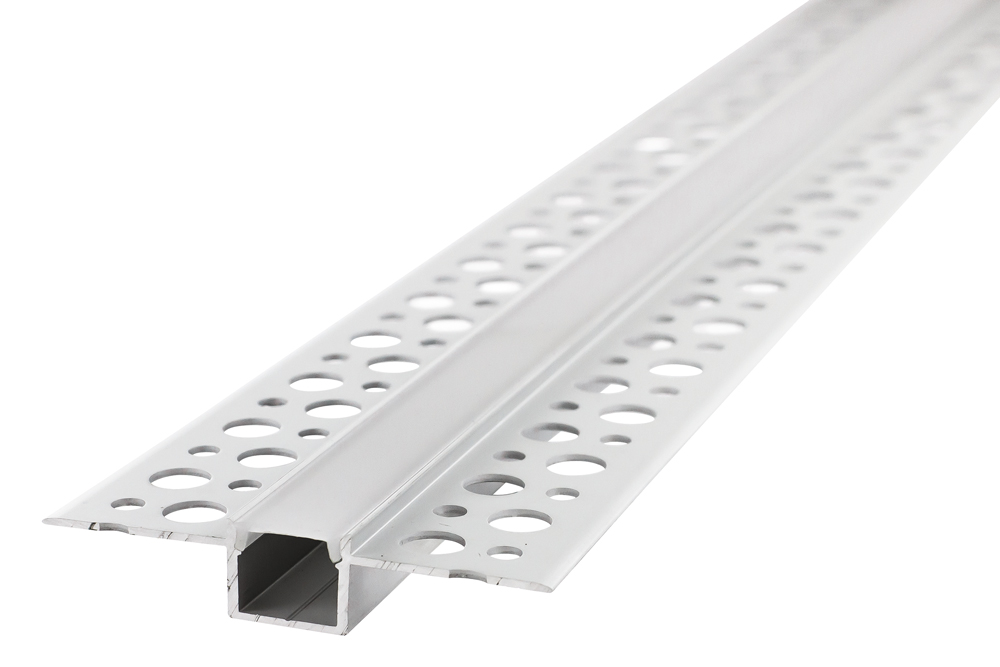 This recessed mounted profile is designed to be plastered into interior walls and ceilings. It is ideal for lighting applications including illuminating kitchens, bathrooms, toilets, changing rooms and similar rooms which have ceramic tiling. The profile can also be used on plastered walls and ceilings to create linear lighting effects. The L shape trim of the profile makes it easy to fit the profile into plaster and concrete materials, with a seamless finish.