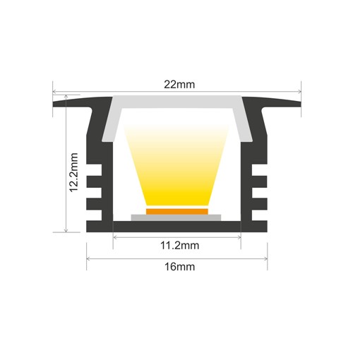 This 1M Recessed Aluminium Profile (also known as Extrusion) is designed for any Integral IP33 and IP65 Flexible LED Strip range with 8mm and 10mm width. A frosted diffuser (cover) is included. Suitable for applications such as furniture lighting, counter lighting, ceiling decorating light etc. Accessories including endcaps, endcaps with cable entry and mounting bracket (clips) are available to purchase separately.