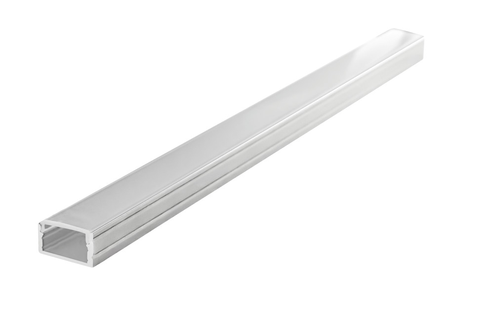 PROFILE ALUMINIUM SURFACE MOUNT 1M FROSTED DIFFUSER 18.6 X 12.5MM INCLUDE 2 ENDCAPS AND 2 MOUNTING BRACKETS INTEGRAL