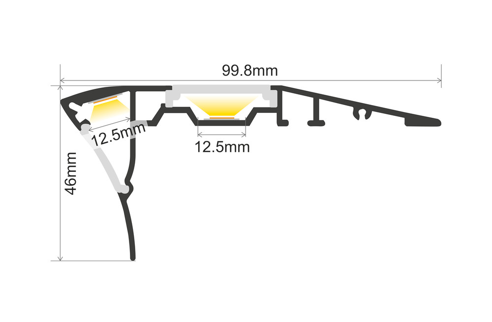 This surface mounted profile is designed for indoor use and allows staircases to be illuminated. The profile has two diffuser channels to illuminate the top and front of the step.