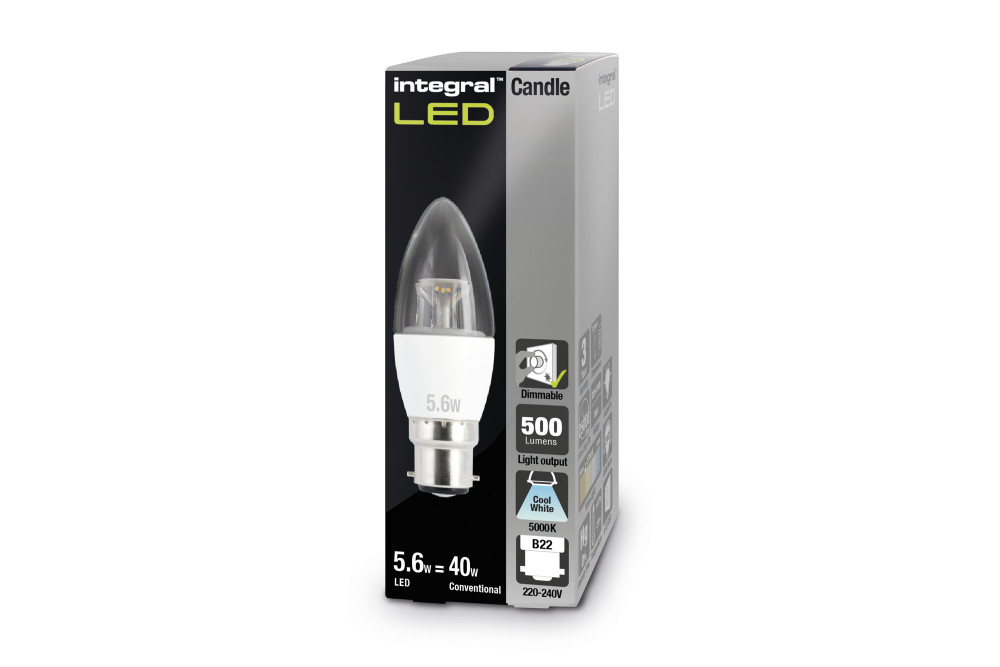 CANDLE BULB B22 500LM 5.6W 5000K DIMMABLE 240 BEAM CLEAR INTEGRAL