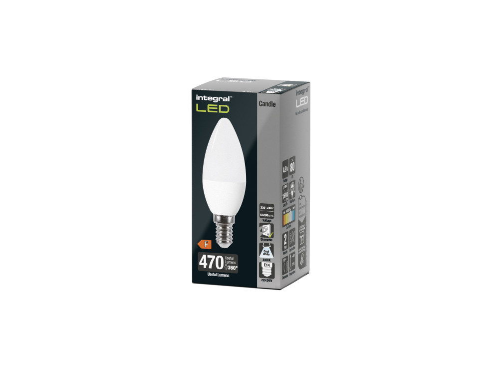 CANDLE BULB E14 470LM 4.2W 4000K DIMMABLE 240 BEAM FROSTED INTEGRAL