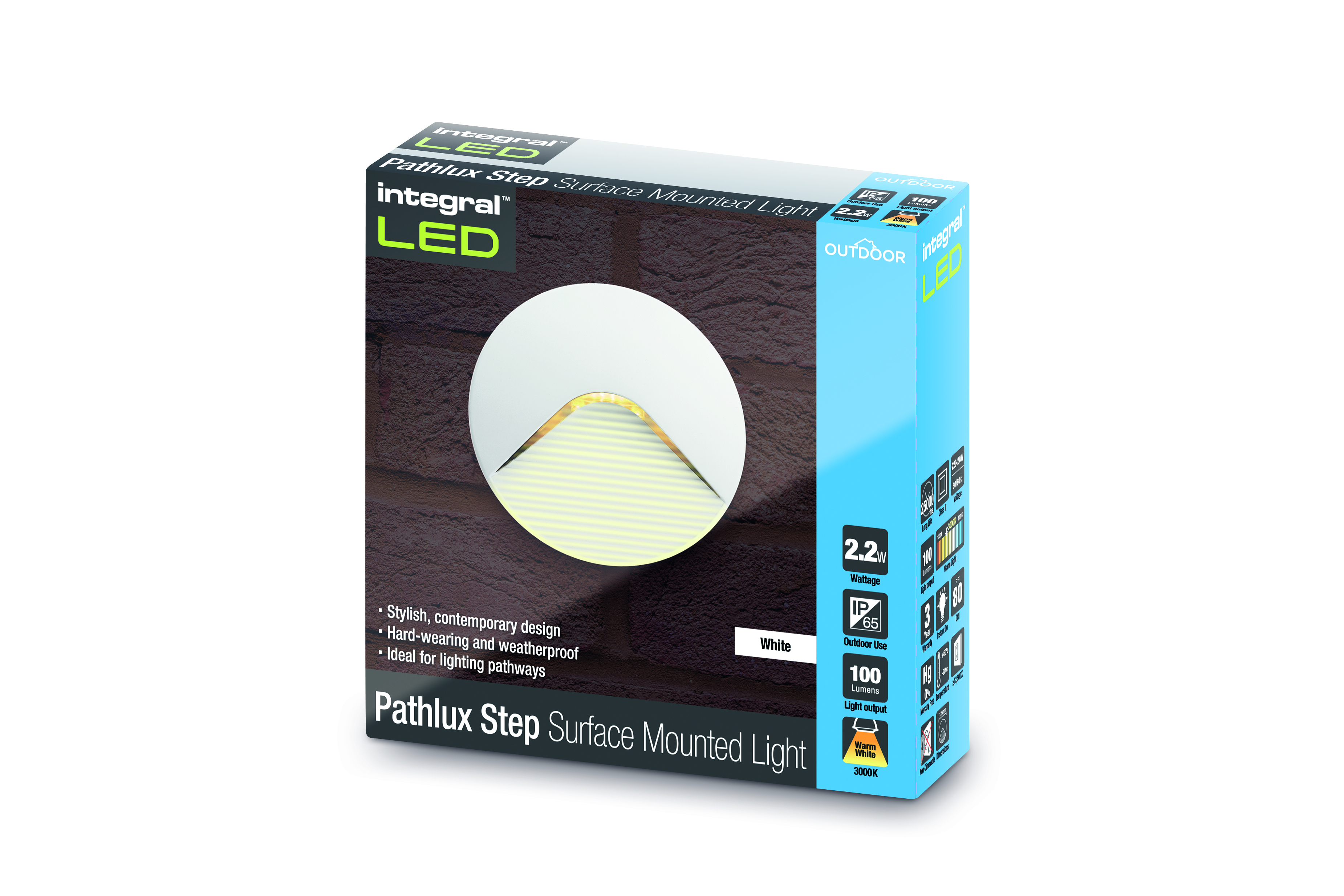 OUTDOOR DECORATIVE WALL LIGHT PATHLUX STEP IP65 100LM 2.2W 3000K DOWN LIGHT WHITE INTEGRAL