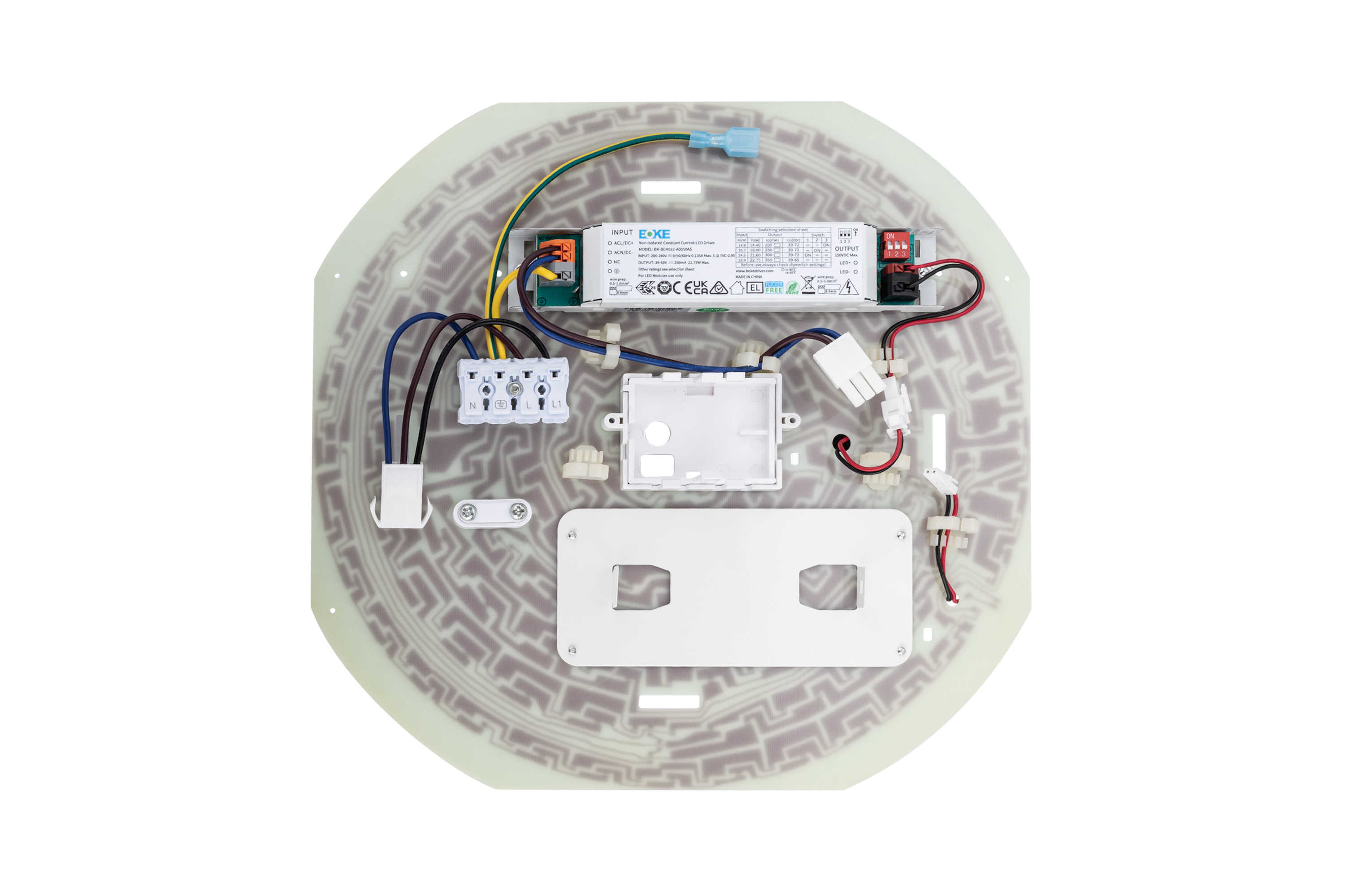 PLUG & PLAY GEAR TRAY FOR FULL COVER VERSION GUARDIAN DIE-CAST ALUMINUM BULKHEAD POWER SELECTABLE 11/13/15/18W, 1179lm - 2128lm, CRI 80 , BEAM ANGLE 120 220-240V/50-60Hz CCT SELECTABLE 3000K/4000K/6500K SUITABLE FOR MW SENSOR & EMERGENCY PLUG IN INTEGRAL