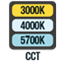 | Correlated Colour Temperature (CCT) (K) | 5700, 3000, 4000 |