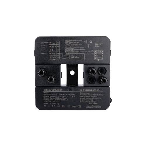 This emergency conversion pack is suitable for Integral LED remote LED driver and detachable LED board Highbays up to 200W. It provides 3 hours of emergency illumination during a power cut and compatible with dimmable and non-dimmable constant current drivers. Simple installation and features include an eco-friendly, long-life LiFeP04 high-capacity battery, short-circuit protection and optional manual-test button.